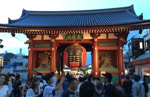 お盆(旧盆8月15日)に浅草寺にお参りに。日中は猛暑なので夕方に。 夕方5時頃ですが賑わっていました。着物(主に浴衣)の人も多くこの時期らしい雰囲気です。 海外の観光客もとても多くいろんな言語が飛び交っています。驚いたのは仲見世の売り子さんも海…
